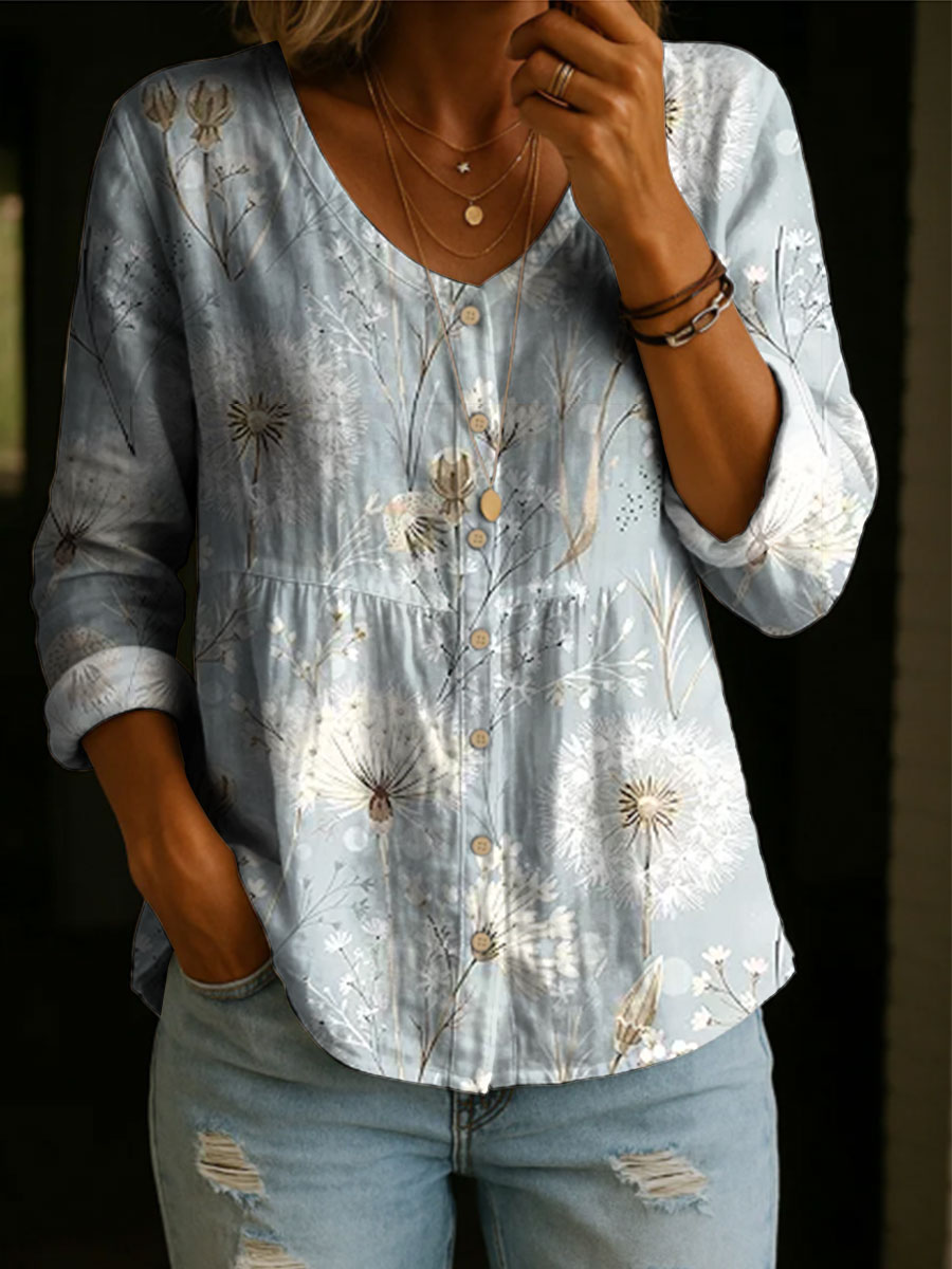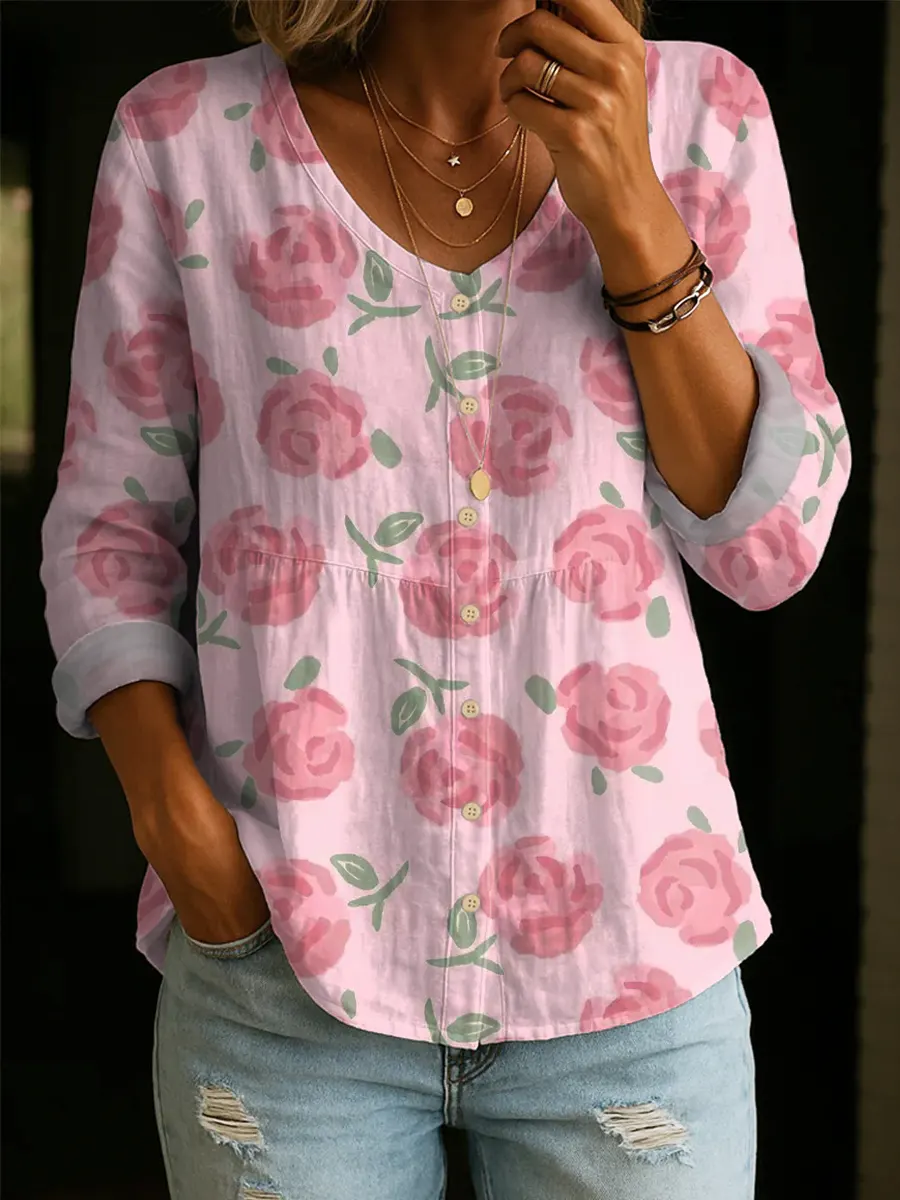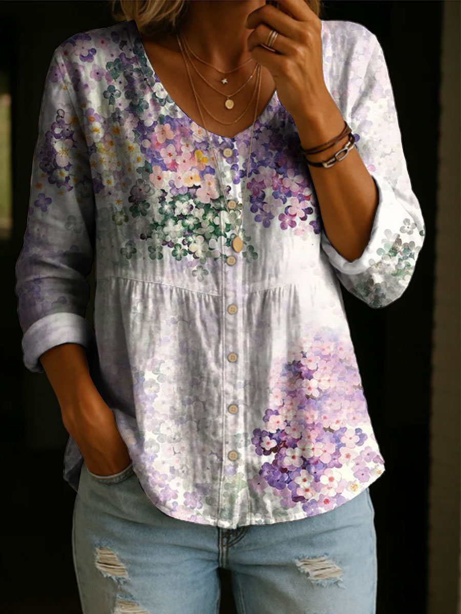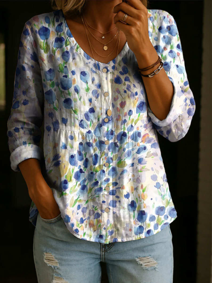 Women's Floral Pattern Art Print Casual Cotton Shirt